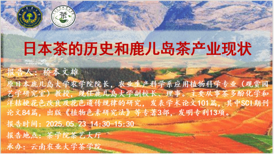 5月23日“红土地”大讲堂:日本茶的历史和鹿儿岛茶产业现状