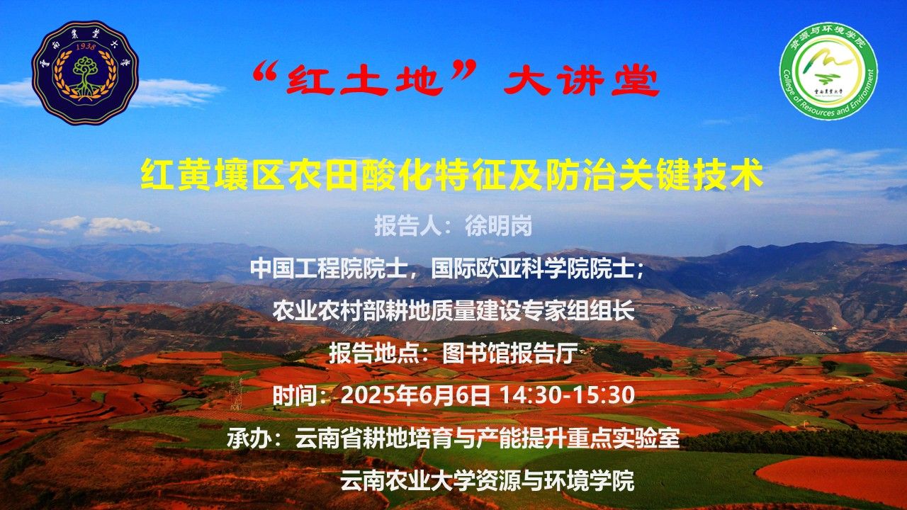 6月6日“红土地”大讲堂:红黄壤区农田酸化特征及防治关键技术