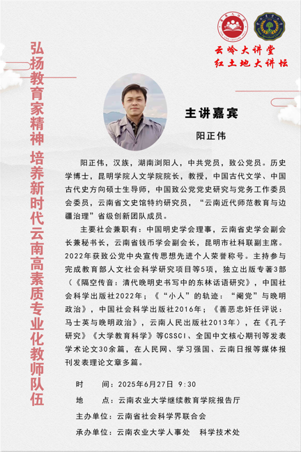 6月27日云岭大讲堂:弘扬教育家精神 培养新时代云南高素质专业化教师队伍