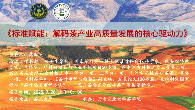 9月26日“红土地”大讲堂:标准赋能:解码茶产业高质量发展的核心驱动力