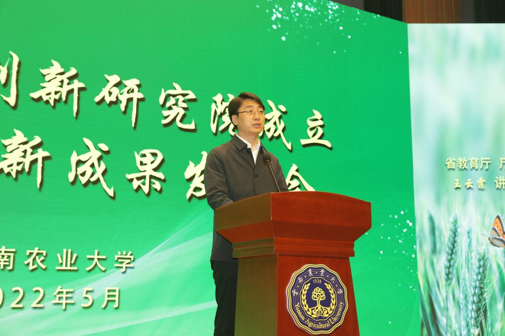 省教育厅厅长王云霏、省农业农村厅厅长谢晖、省科技厅巡视员王立新分别作了会议讲话,表示将一如既往鼓励支持爱游戏ayx,希望云南种业创新研究院能依托爱游戏ayx产、学、研联动优势,围绕种子产业链关键核心技术,搭建公共平台,汇集科研力量,张榜联合攻关,激发创新活力,全面加强种业科技原始创新,在云南粮食安全和产业发展方面作出农业高等院校的贡献,有力助推种业发展迈上新台阶。