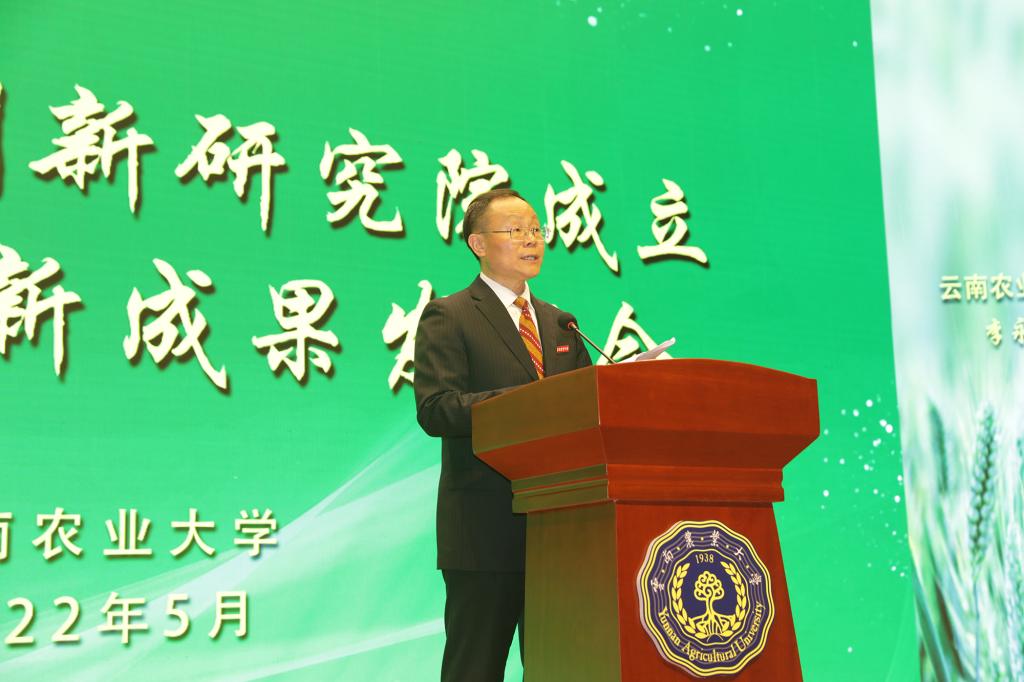 本站消息 2022年5月21日下午,云南种业创新研究院成立暨种业创新成果发布会在学校校友会堂举行。“时代楷模”、中国工程院院士、学校名誉校长朱有勇院士,省教育厅、省科技厅、省农业农村厅、省乡村振兴局、省林草局、省农科院、省林科院、西南林业大学等有关单位领导,校党委书记黎素梅、校长李永和以及相关企业负责人出席会议,学校其他校领导及部分师生代表参加会议。